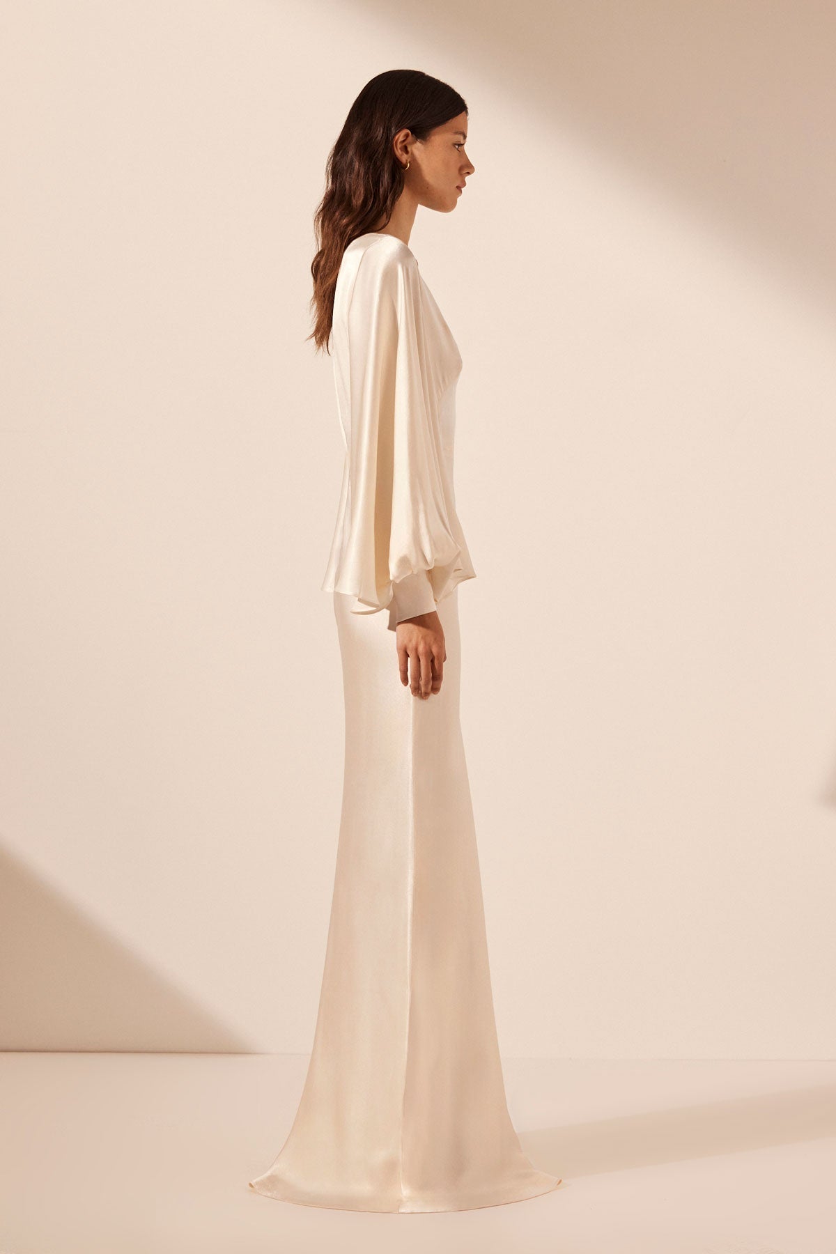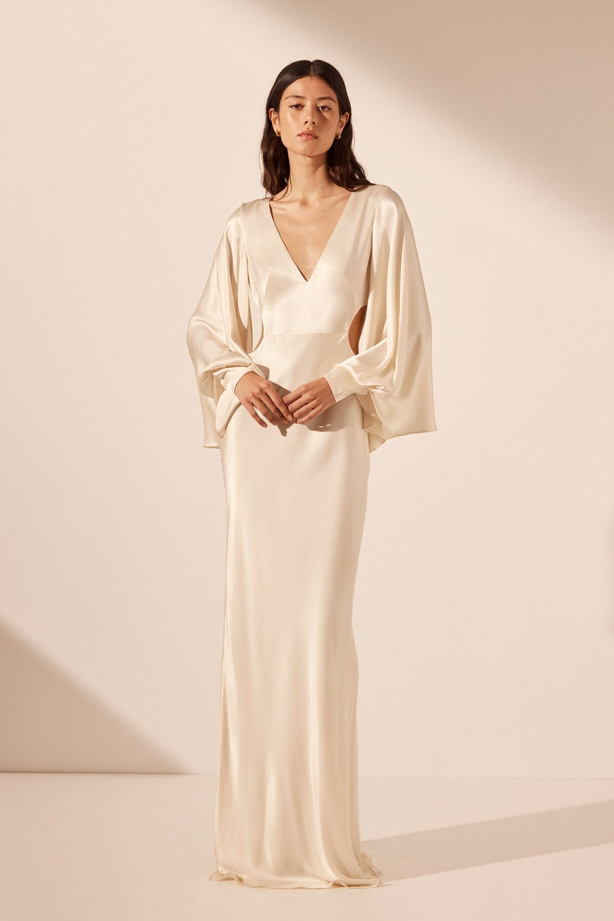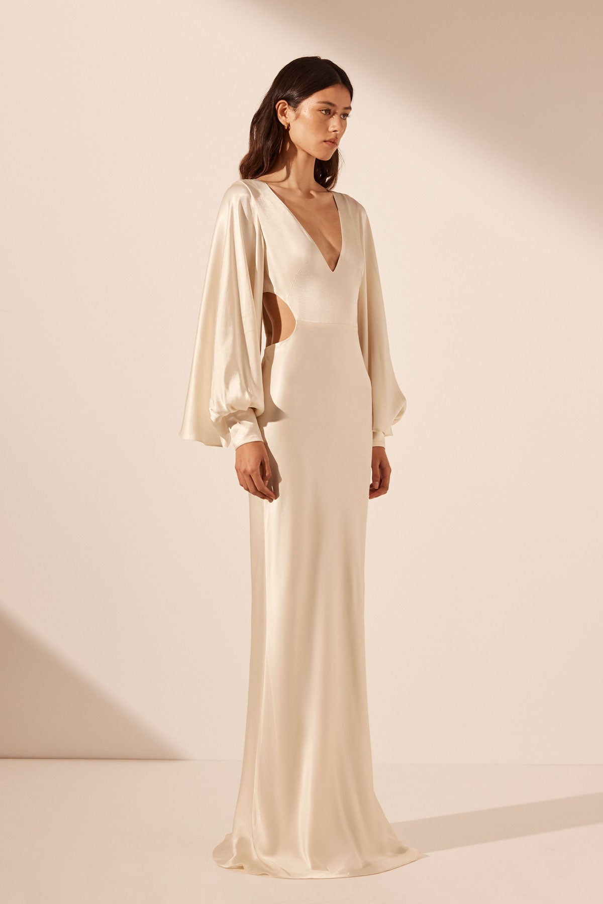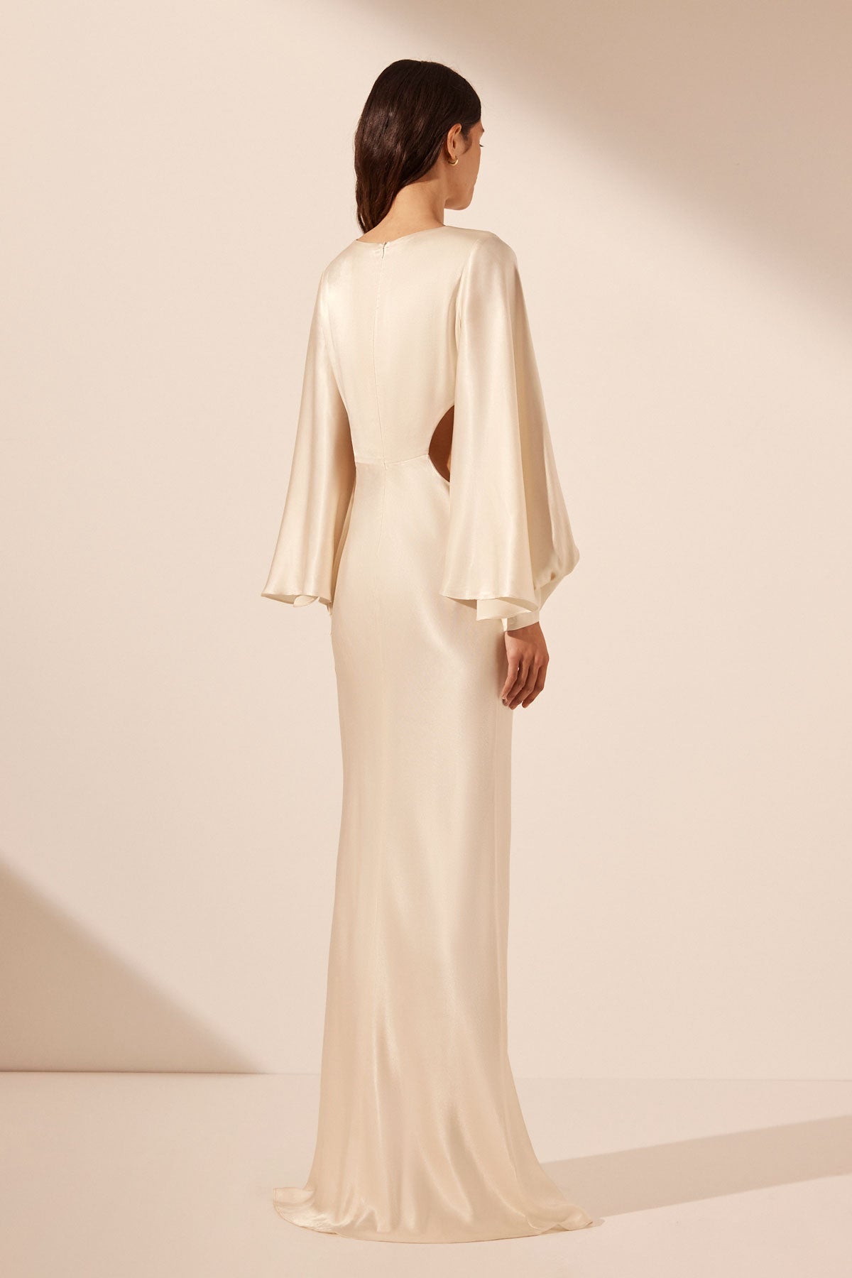 LA LUNE CIRCLE SLEEVE CUT OUT MAXI DRESS - CREAM