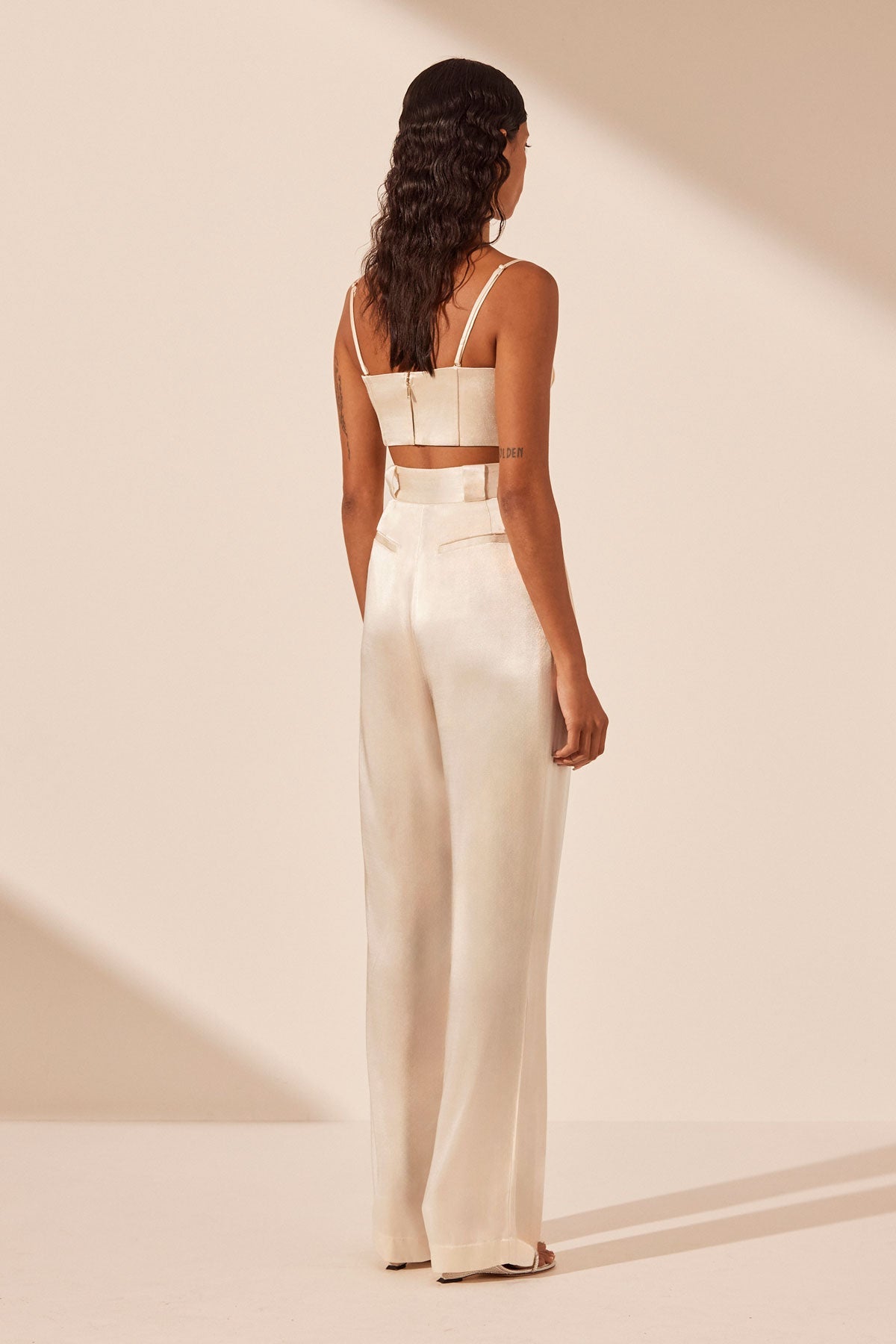 Corded ruched bralette in cream in a LENZING? ECOVERO? with luxurious satin finish.