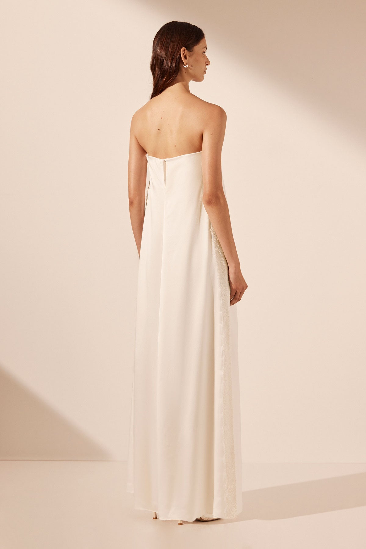 LA LUNE CUMULUS SILK STRAPLESS LACE COLUMN MAXI DRESS - IVORY