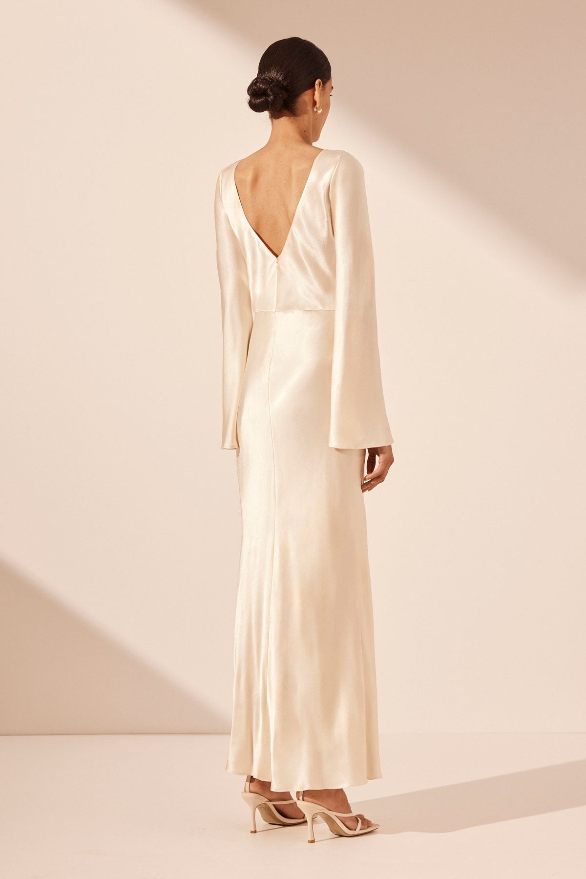 LA LUNE FLARED SLEEVE SIDE SPLIT MIDI DRESS - CREAM