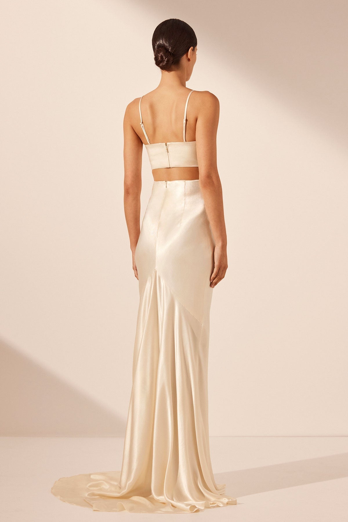 High waisted maxi skirt in cream in a LENZING? ECOVERO? with luxurious satin finish.