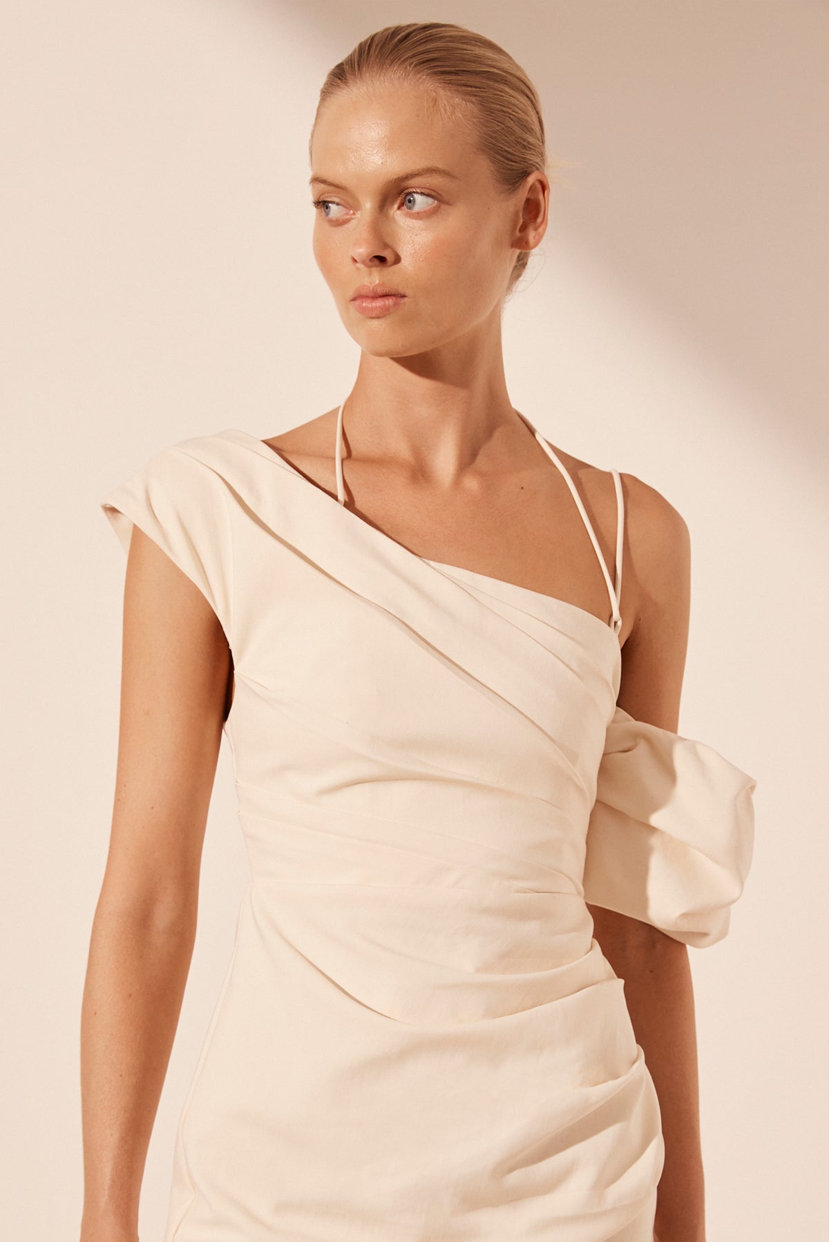 LANI ASYMMETRICAL DRAPED MINI DRESS - RICE