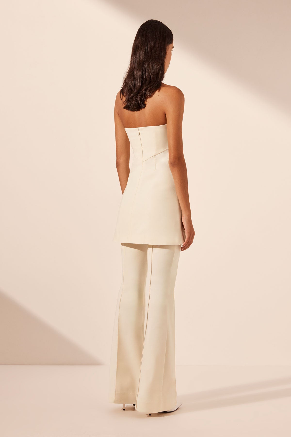 Boot cut flared pants in rice in a premium stretch cotton blend.