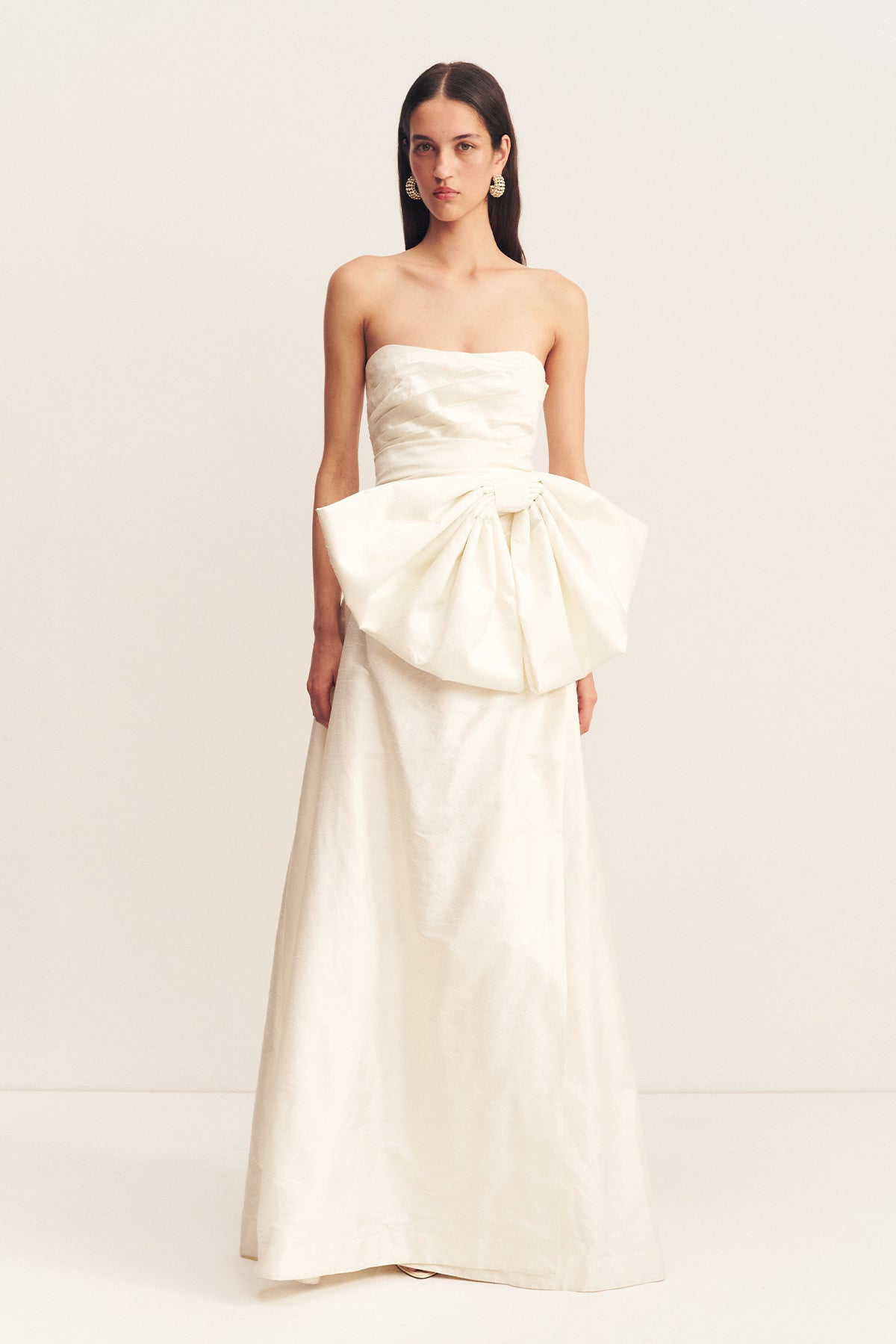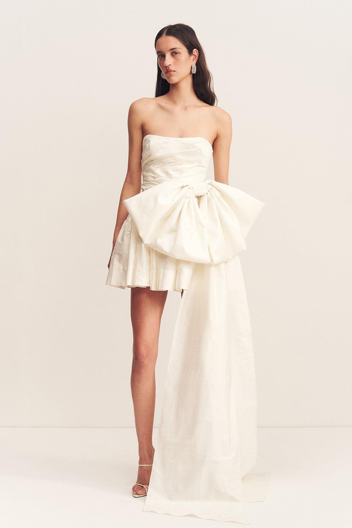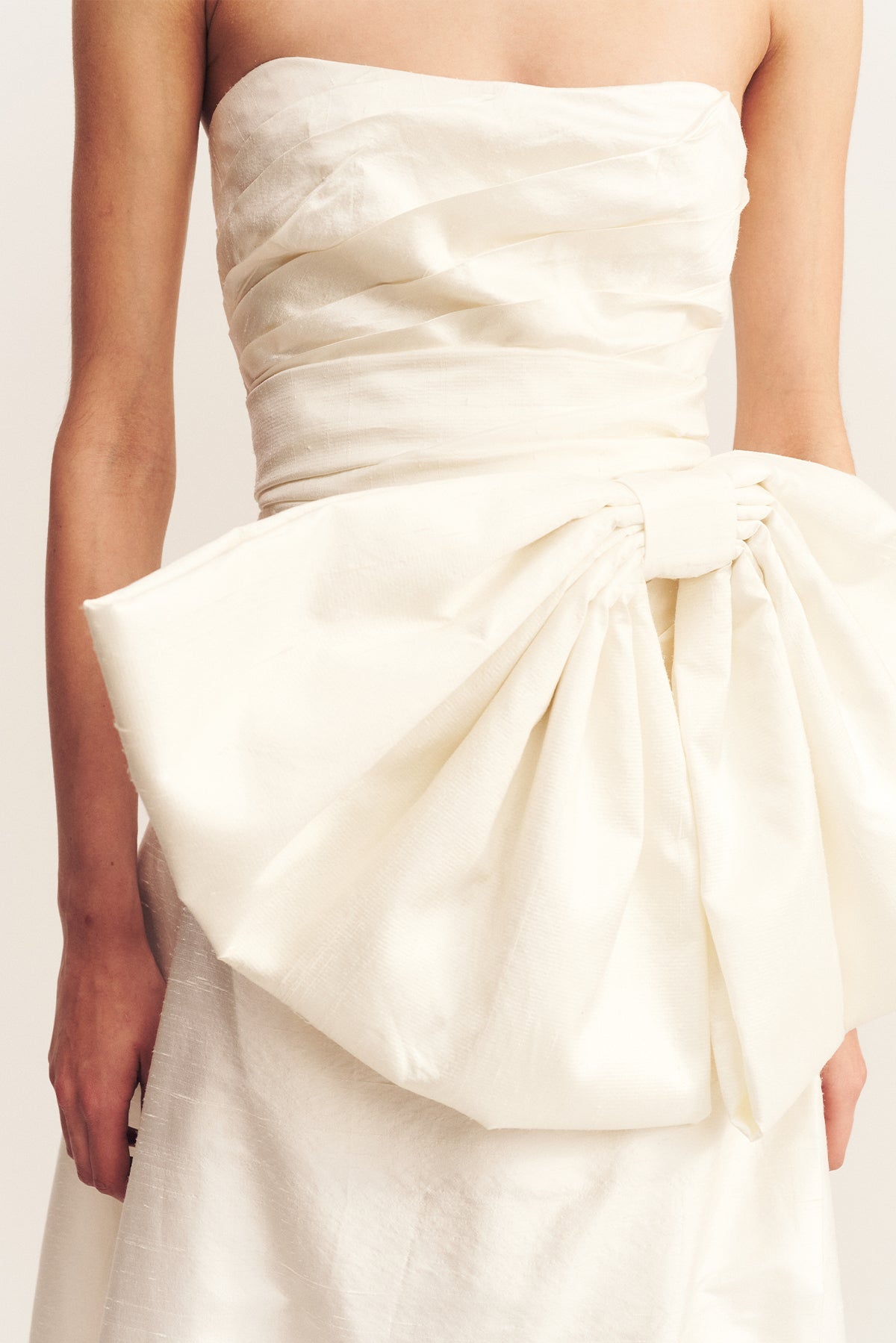 The Lucero Bow is a removable silk accessory piece that features an extended tail to add instant drama. Wear it as a train or wrapped around the body ¡ª designed to be paired to elevate our Lucero bridal looks.