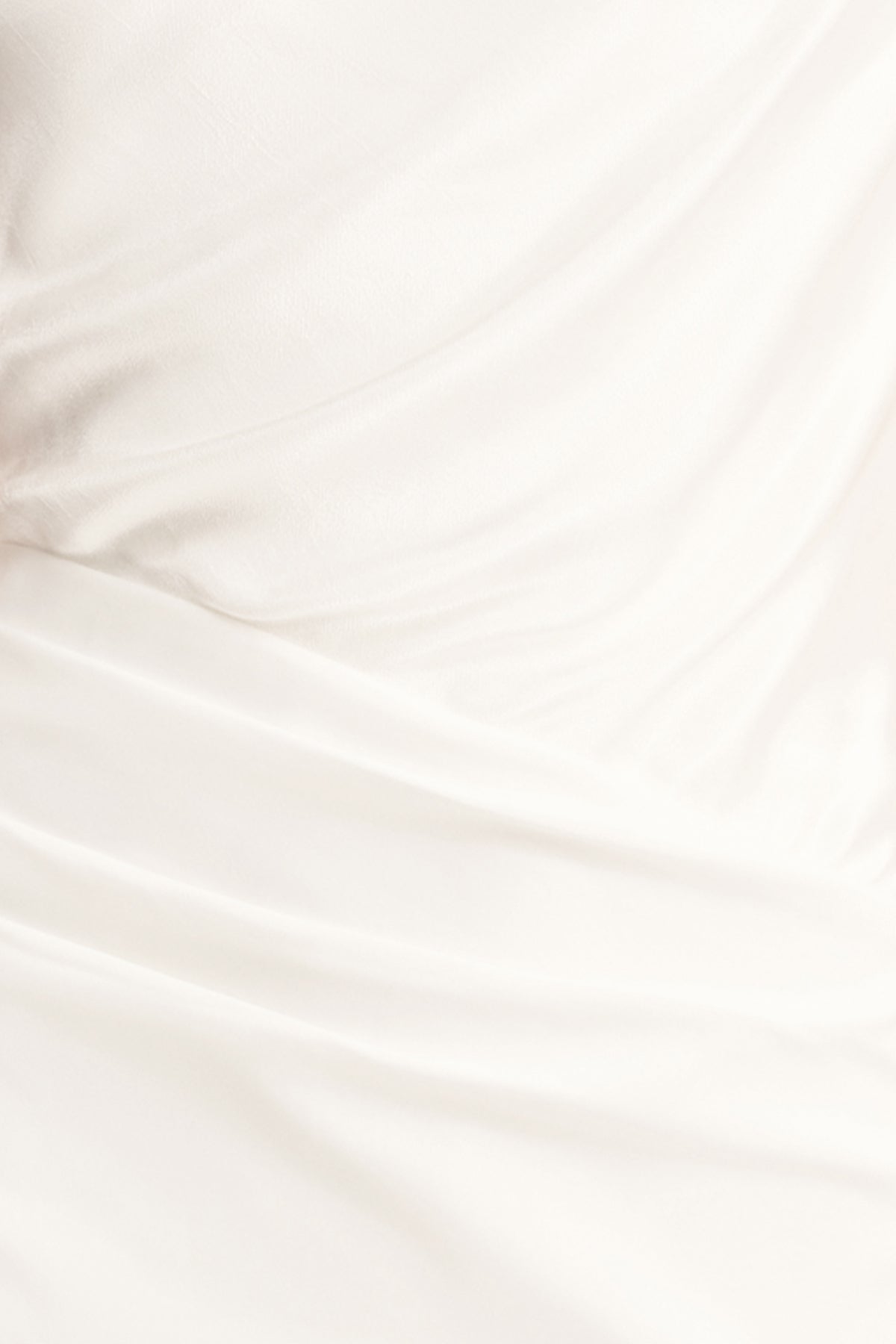 Contrast draped cowl mini dress in white in a premium stretch cotton blend contrasted with a satin finish LENZING? ECOVERO?.